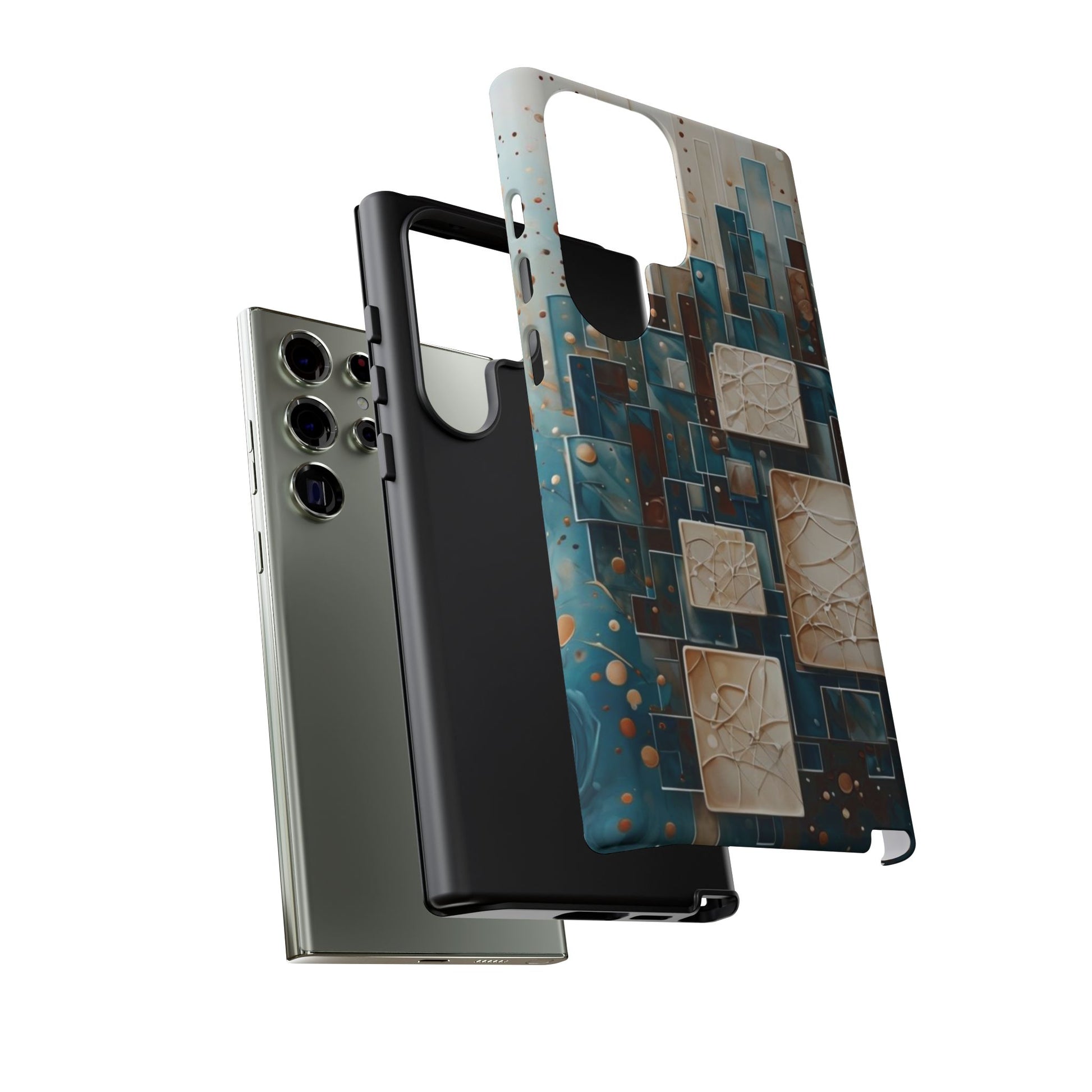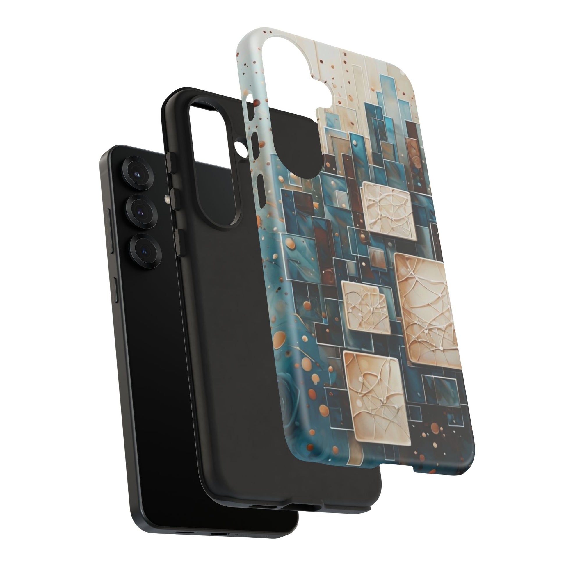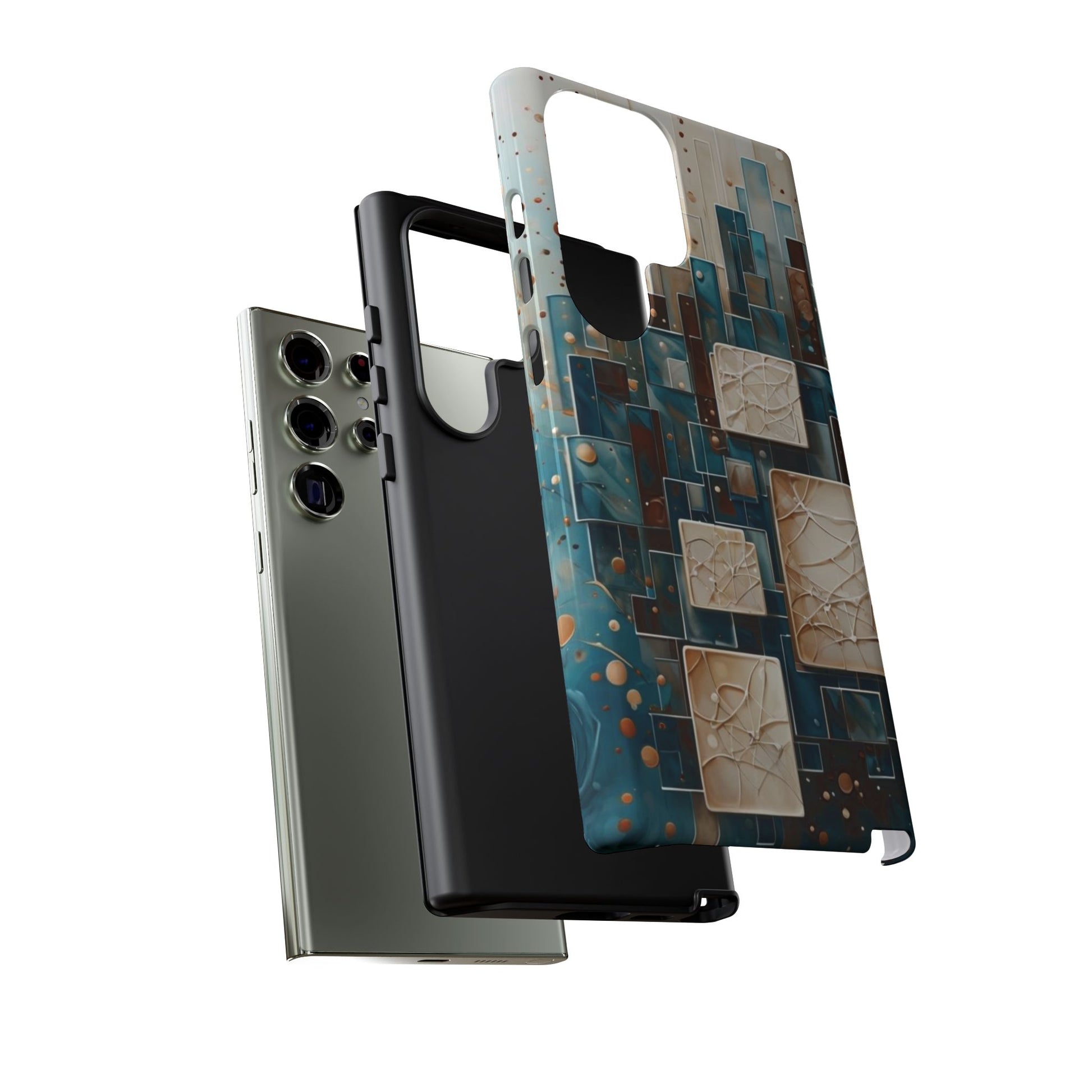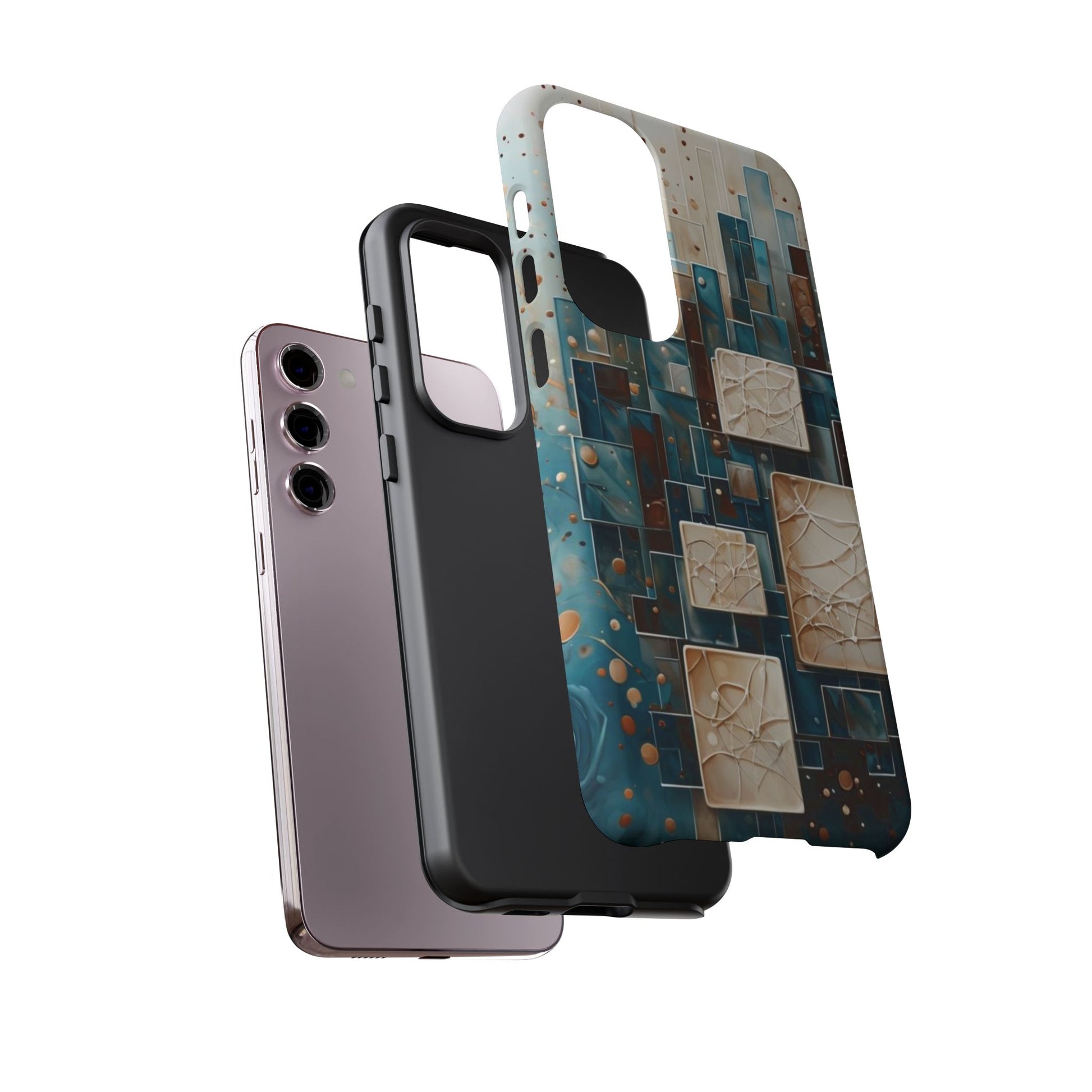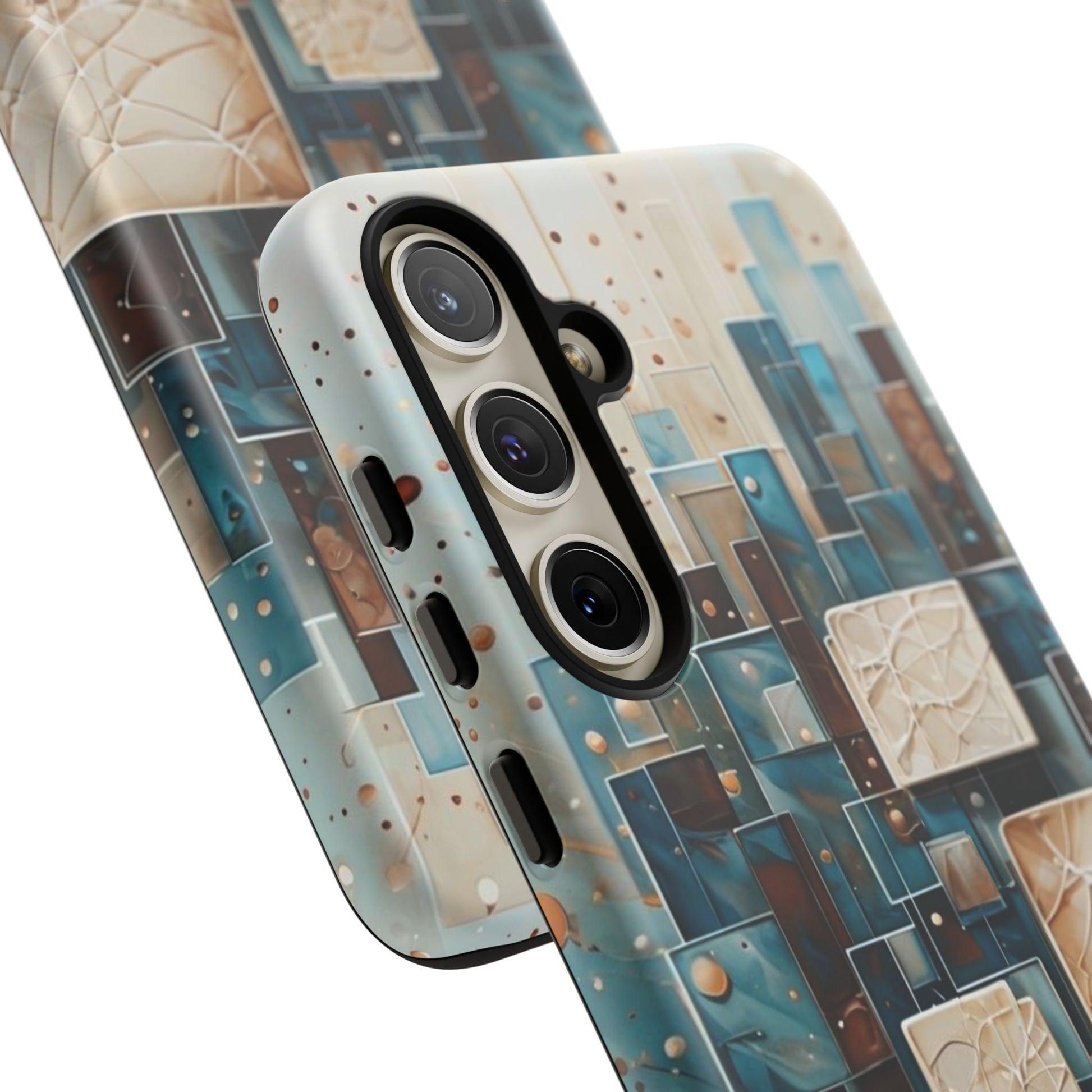 Inspired by modern architecture and layered design, the Architectural Drift Samsung Galaxy Case blends structured geometry with subtle atmospheric detail. Stacked rectangular forms in deep teal, parchment and warm neutral tones create a sense of depth and balance, while delicate dotted accents add texture without overwhelming the design.