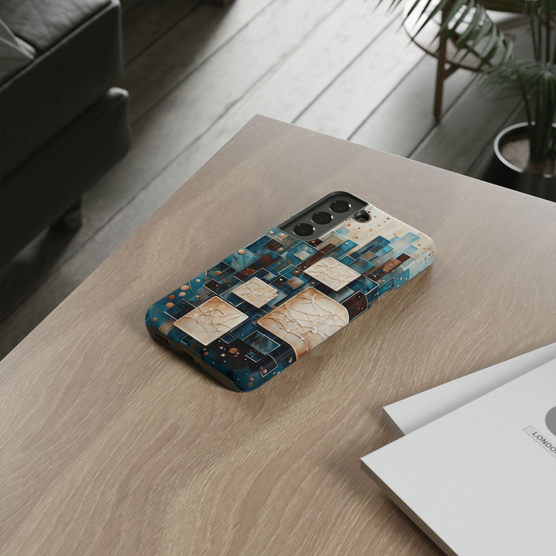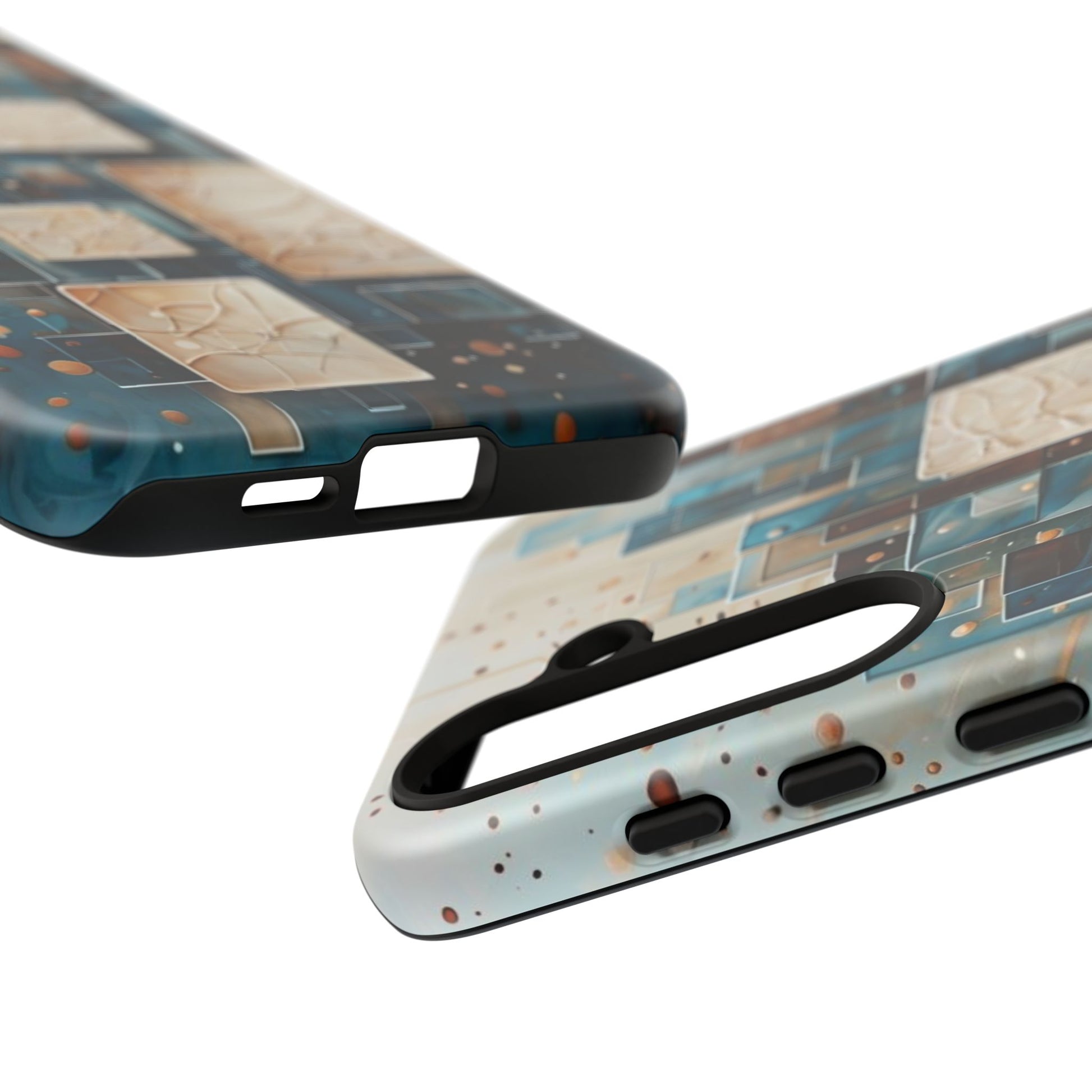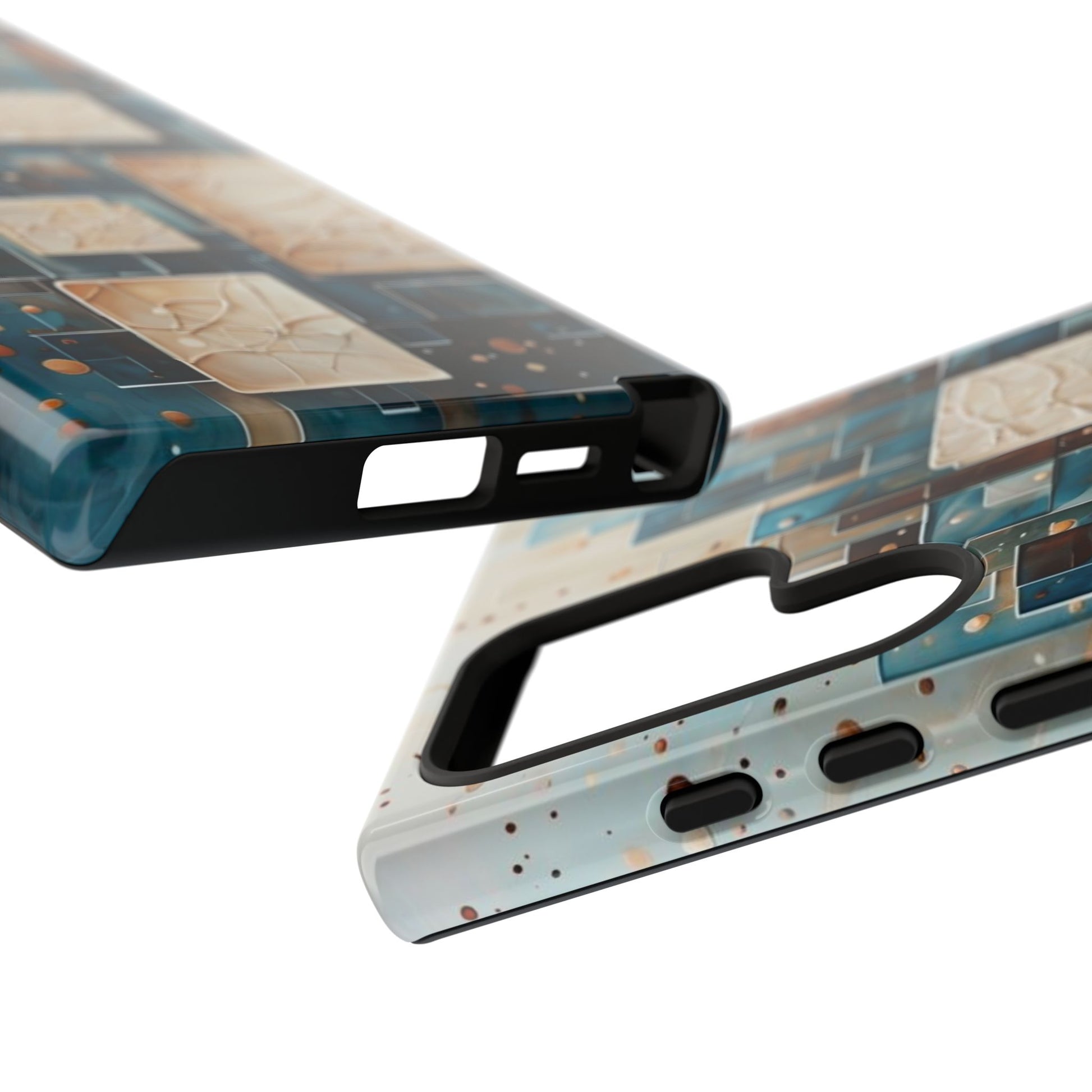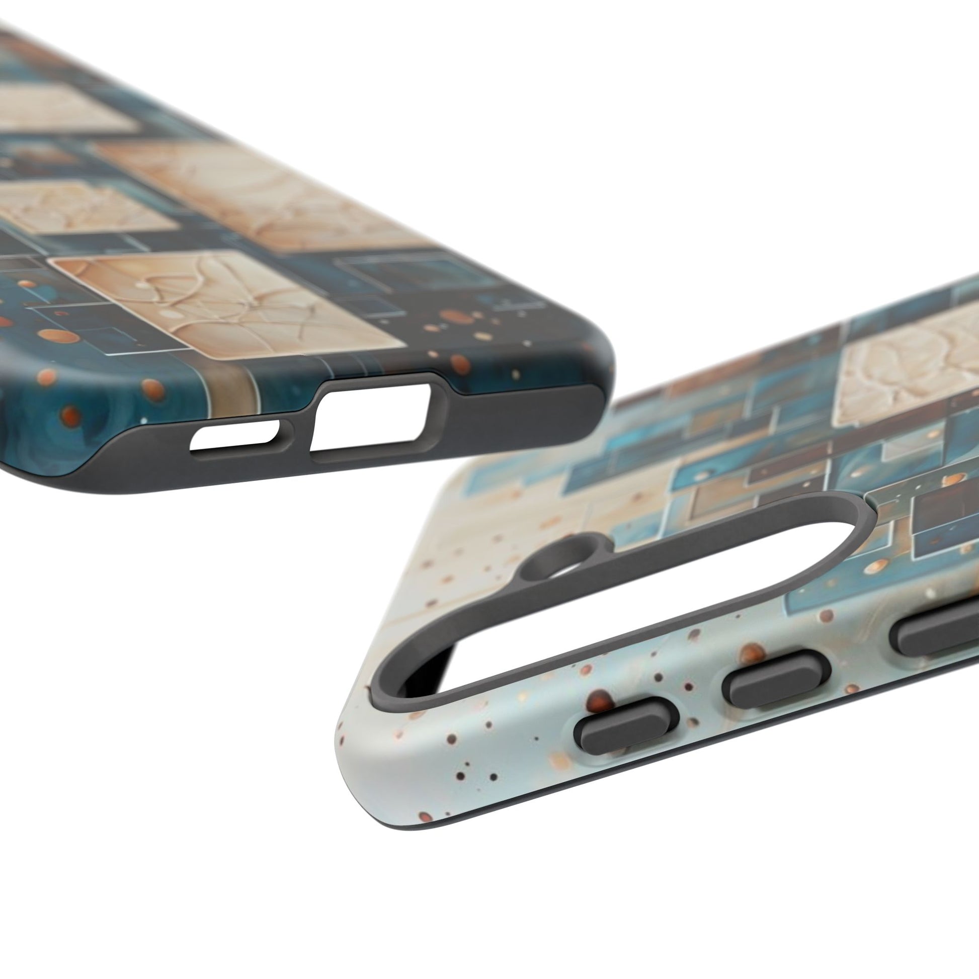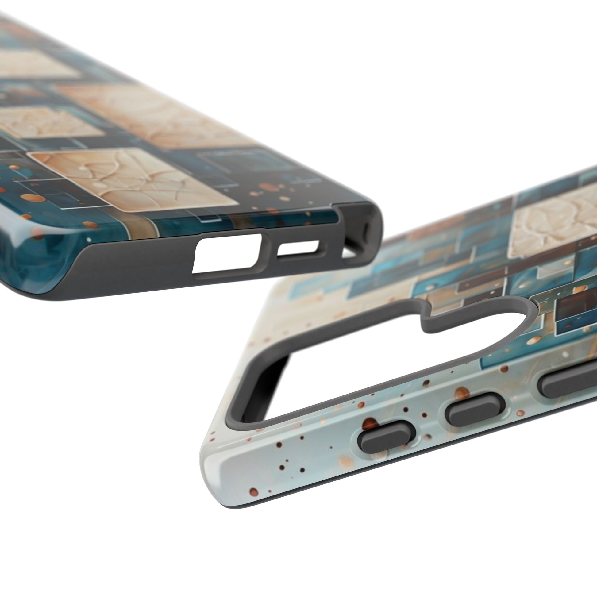 Inspired by modern architecture and layered design, the Architectural Drift Samsung Galaxy Case blends structured geometry with subtle atmospheric detail. Stacked rectangular forms in deep teal, parchment and warm neutral tones create a sense of depth and balance, while delicate dotted accents add texture without overwhelming the design.