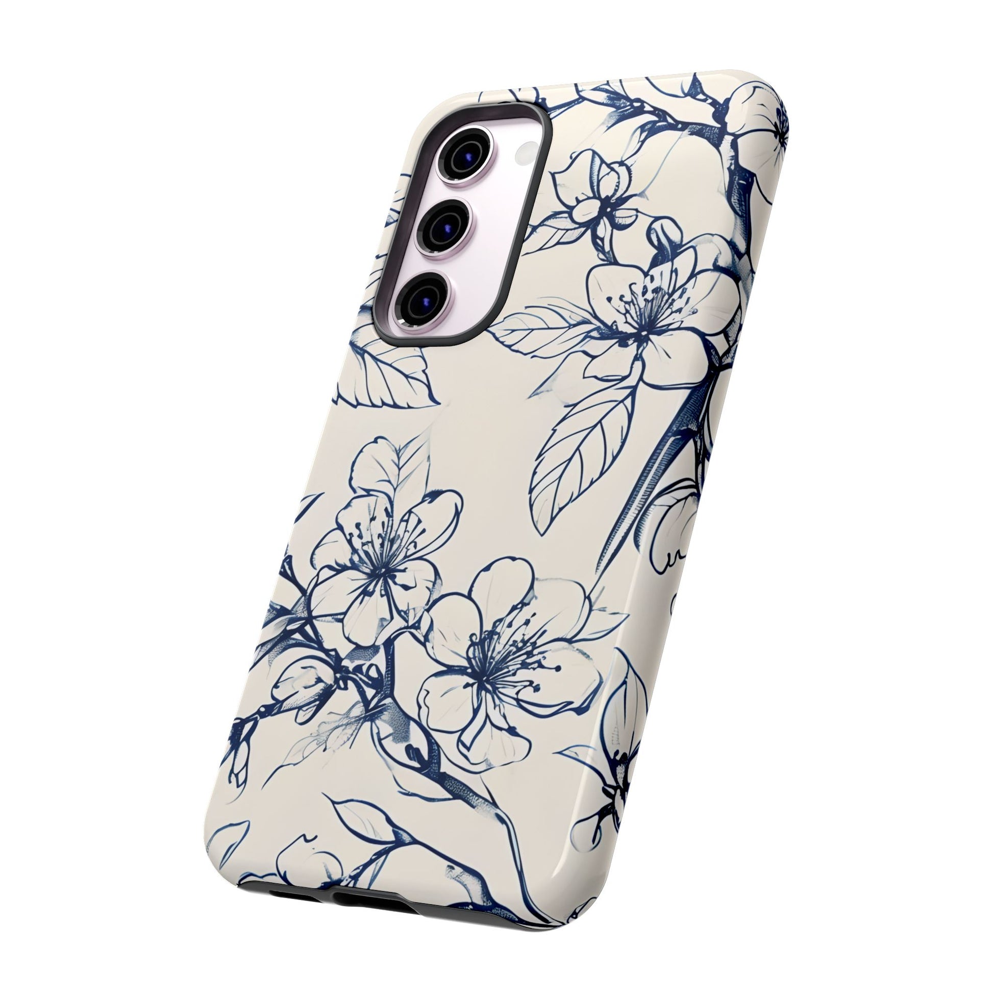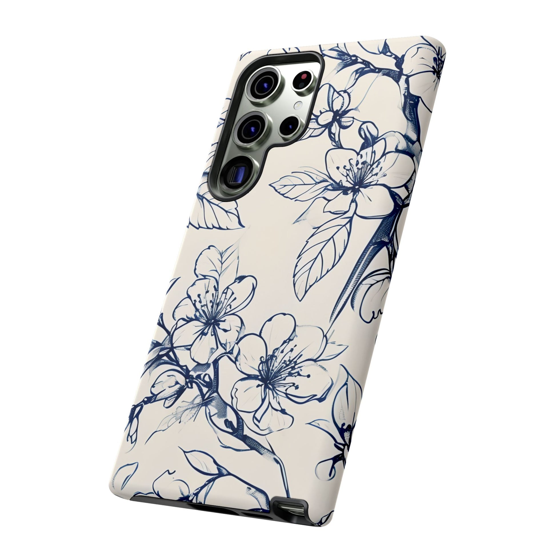 Elevate your device with the Blossom Sketch phone case. This elegant design features delicate, hand-drawn blue blossoms and leaves on a creamy backdrop, blending minimalist at with timeless botanical beauty. The subtle, sketch-inspired lines create a sophisticated accessory perfect for anyone who loves unique style.