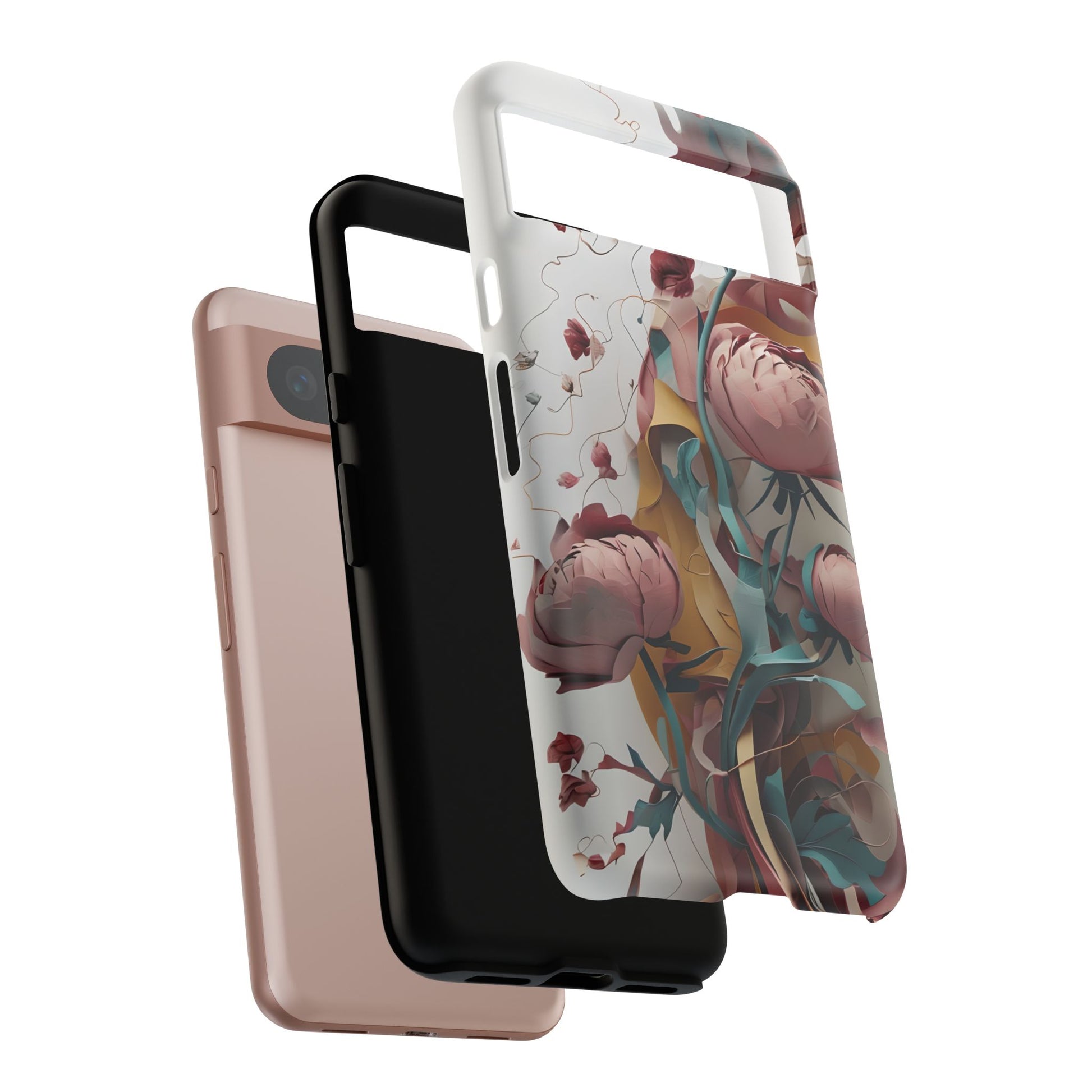 Wrap your Google Pixel with the Blushing Peony Veil tough phone case. Featuring lush, painterly peony blooms in soft blush, dusty pink, and muted greens, this case brings a touch of vintage elegance and modern artistry to your everyday essentials.