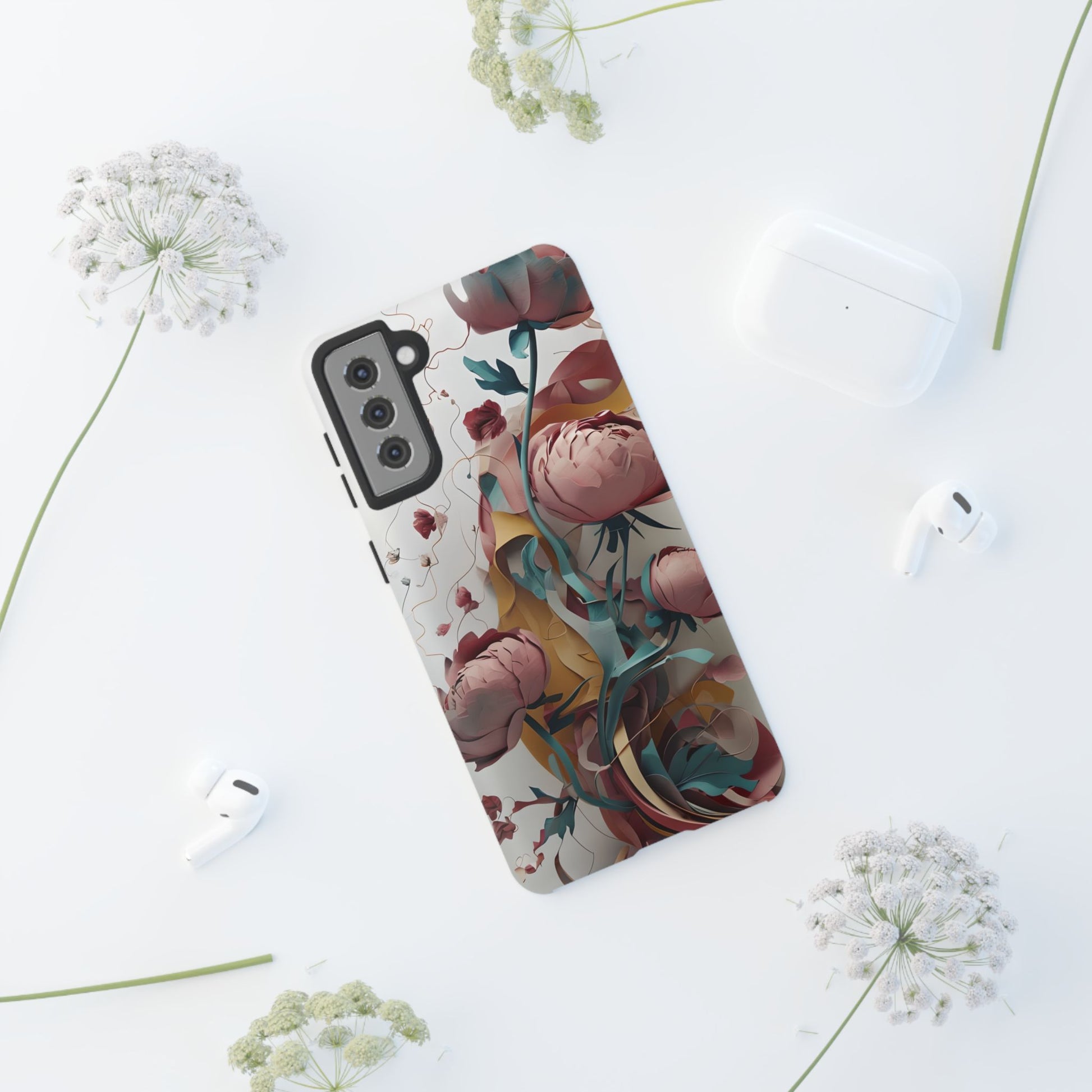 Wrap your Samsung Galaxy with the Blushing Peony Veil tough phone case. Featuring lush, painterly peony blooms in soft blush, dusty pink, and muted greens, this case brings a touch of vintage elegance and modern artistry to your everyday essentials.