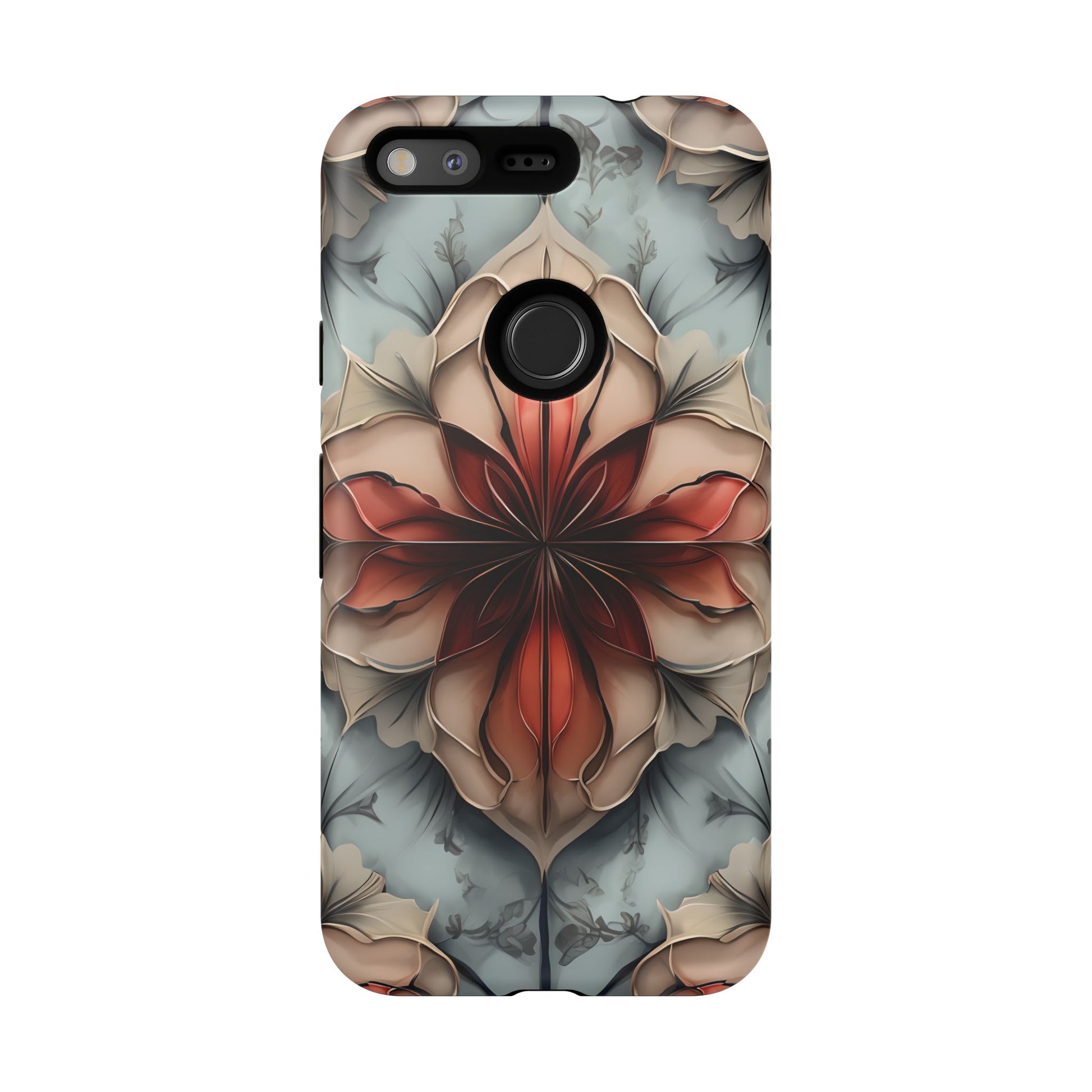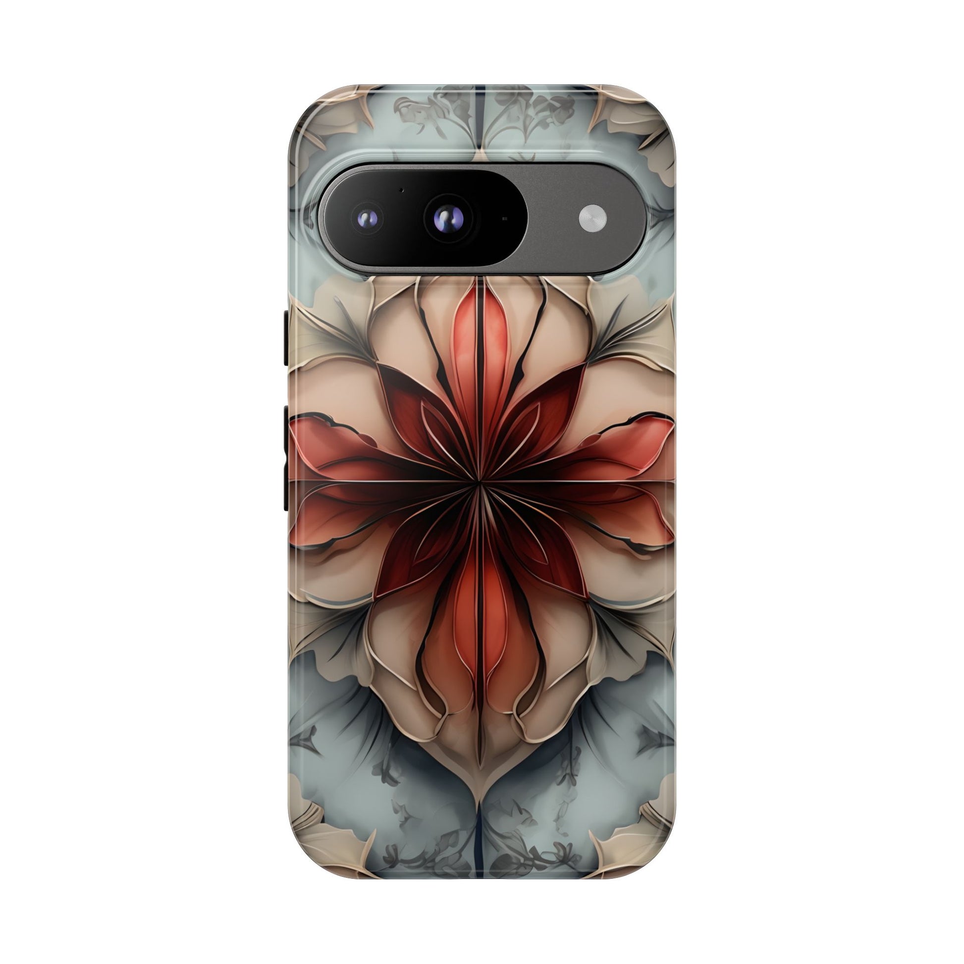 Ember Bloom - Kaleidoscope Collection Artistic Floral - Google Pixel Tough Phone Case - Fiery Symmetrical Design