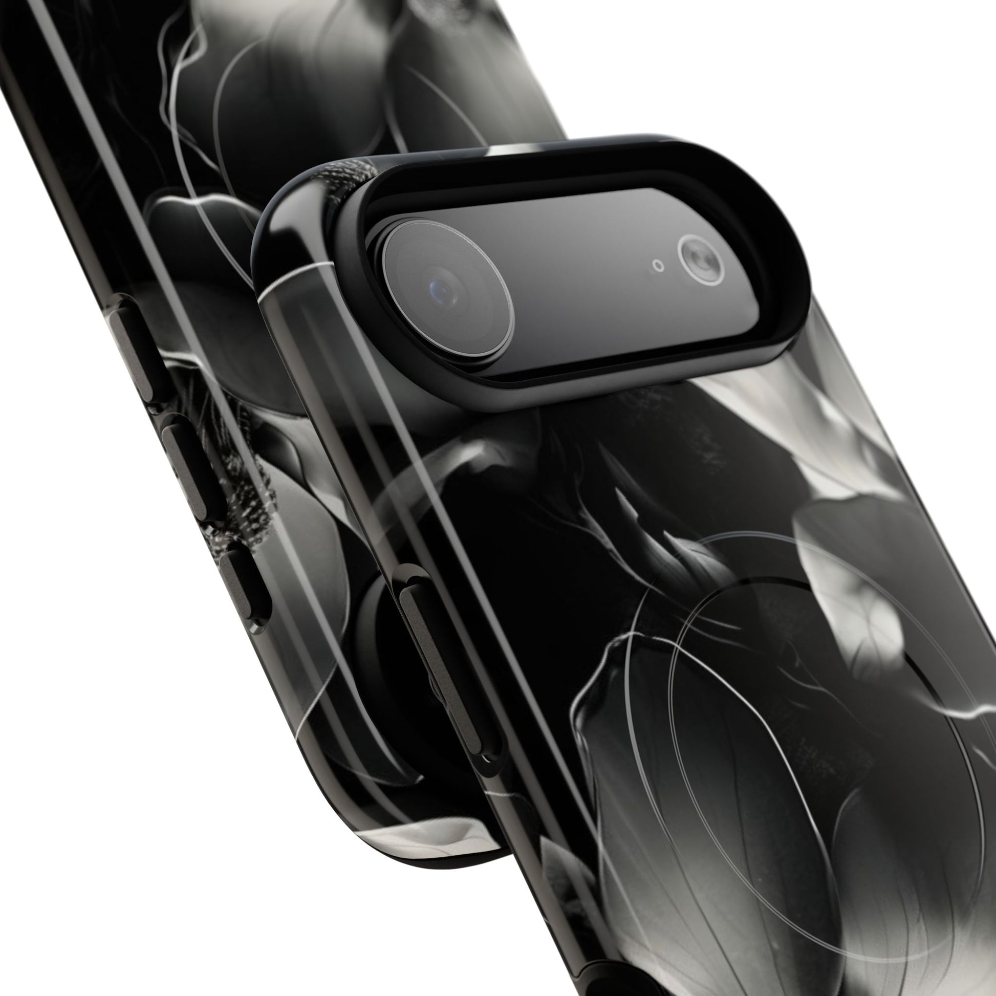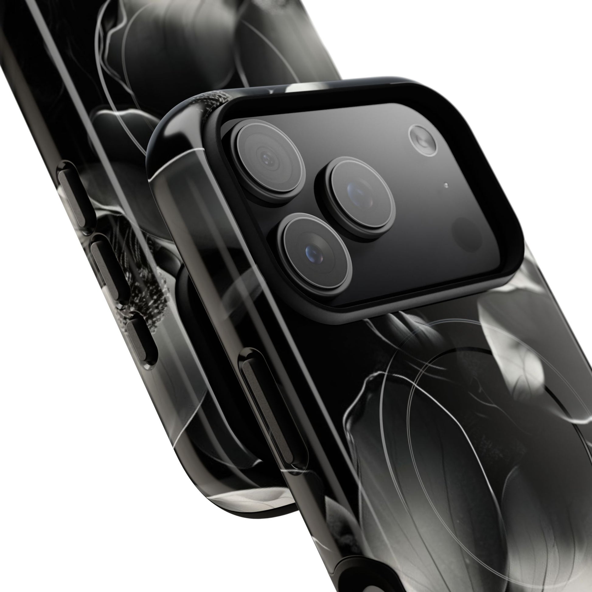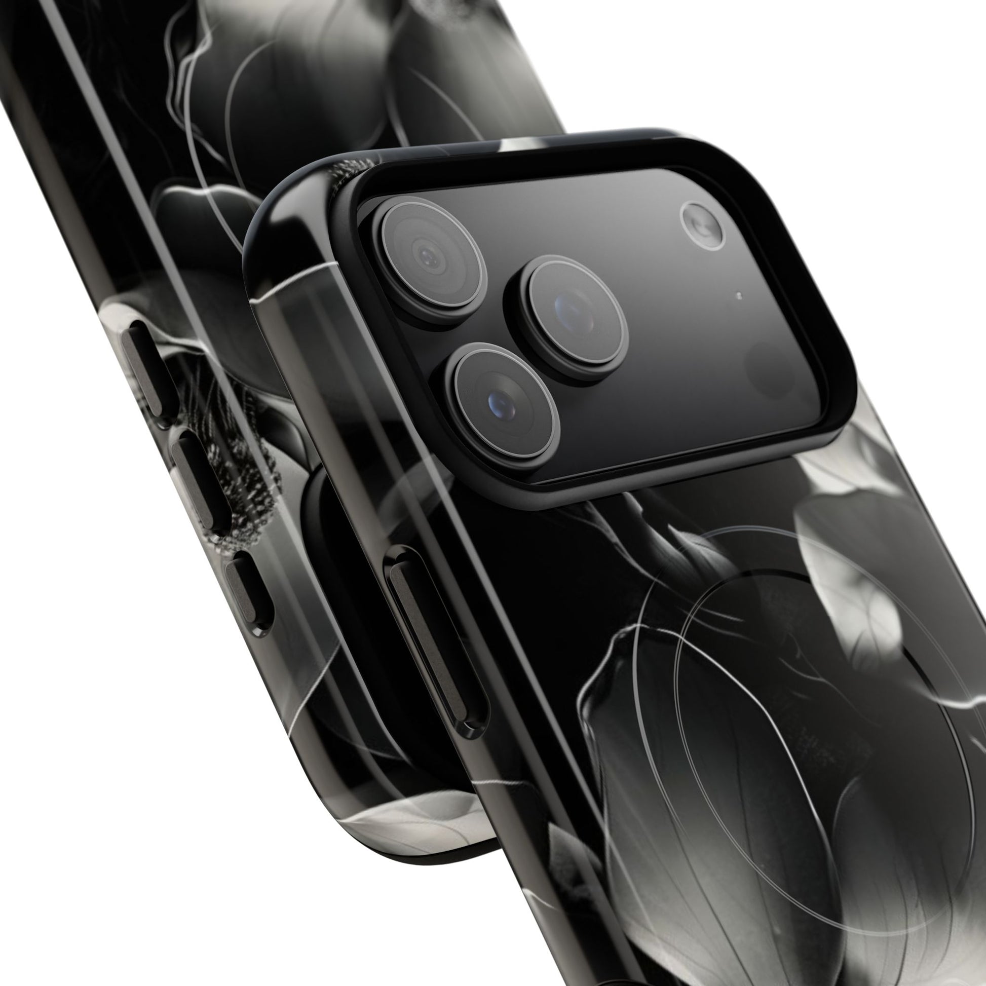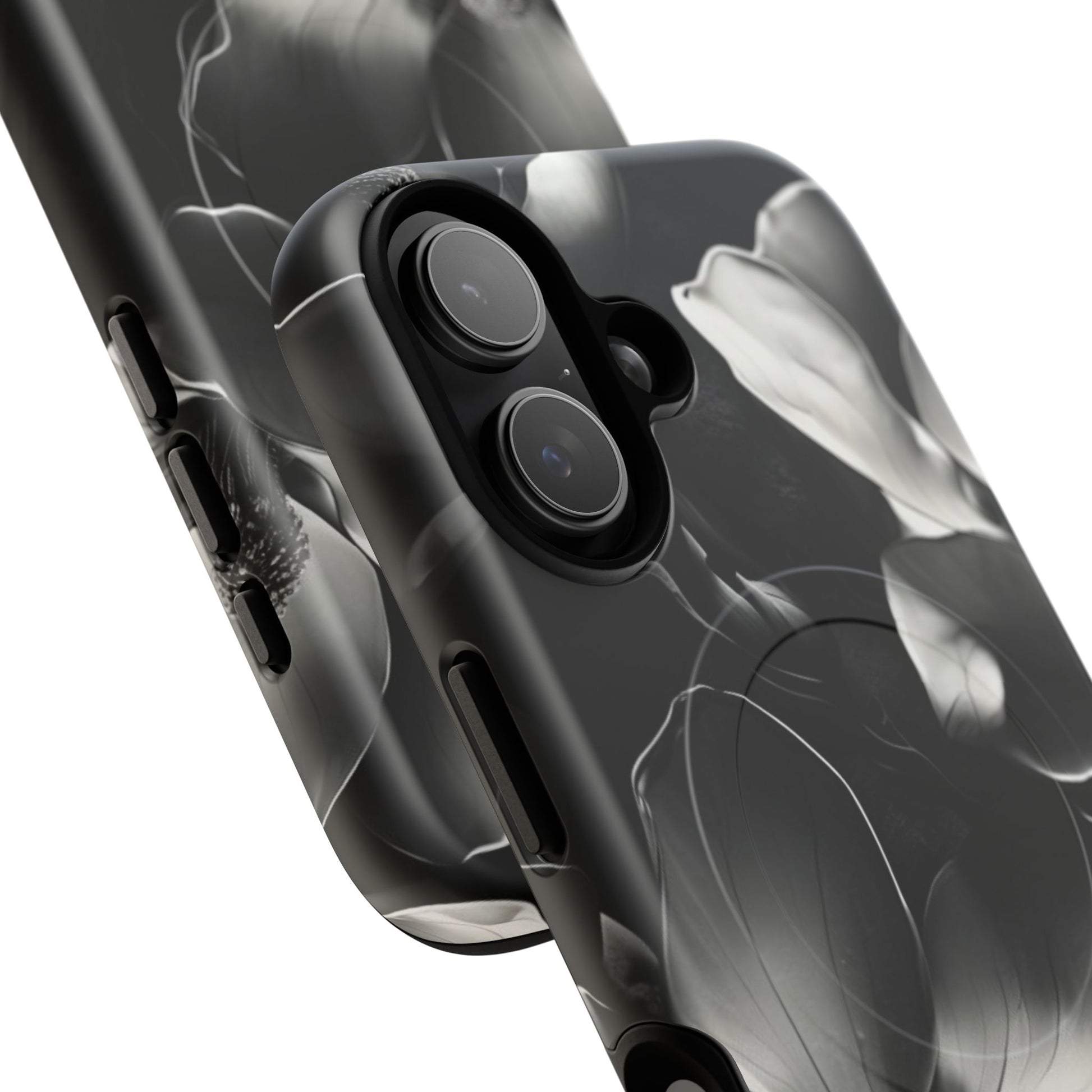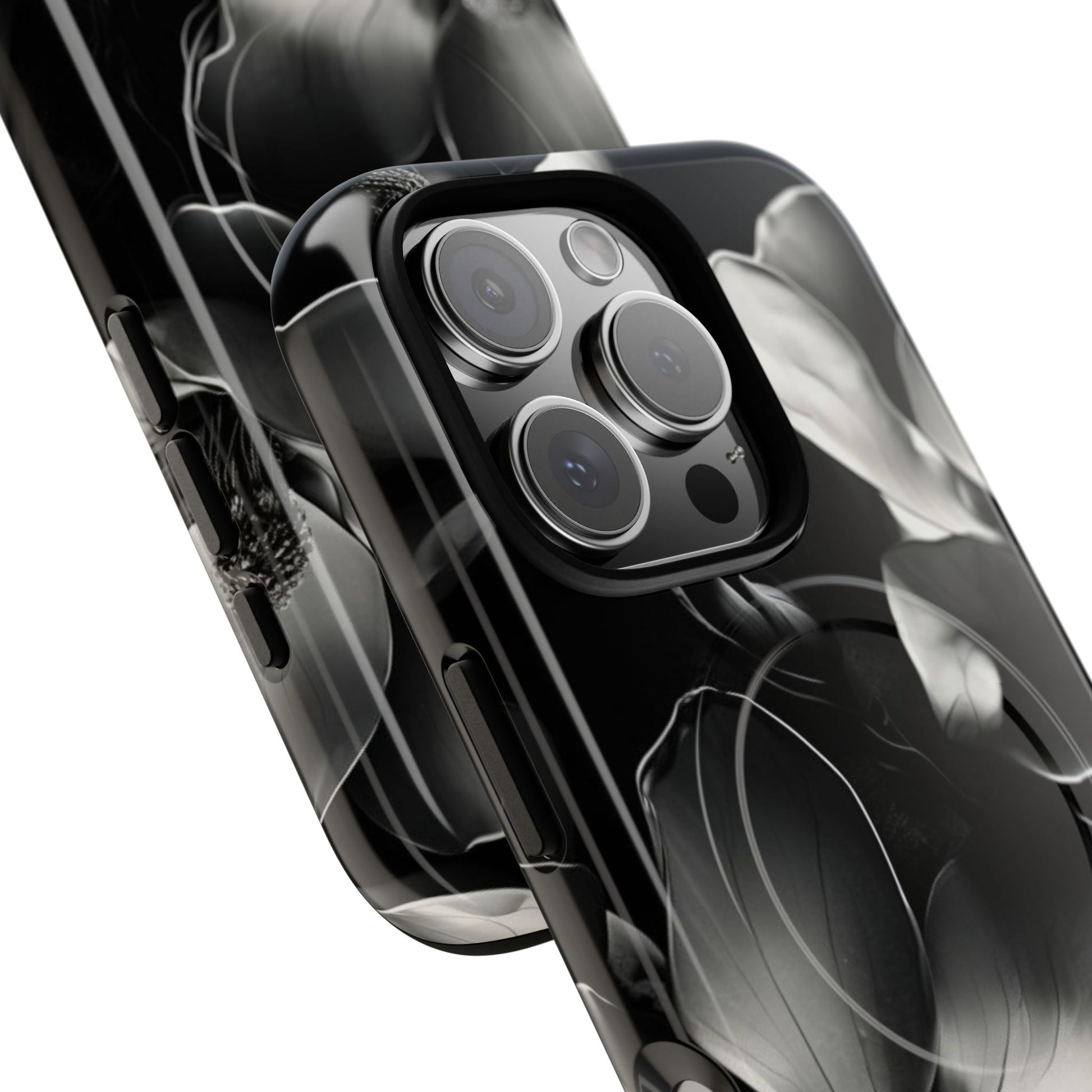 Make a statement with the Monochrome Magnolia iPhone MagSafe compatible phone case. This striking case features bold, black and white magnolias that flow seamlessly into the edges, creating a modern, gallery-inspired accessory for your device. The high-contrast design is both timeless and on-trend, perfect for anyone who wants their phone to stand out with elegance and style.