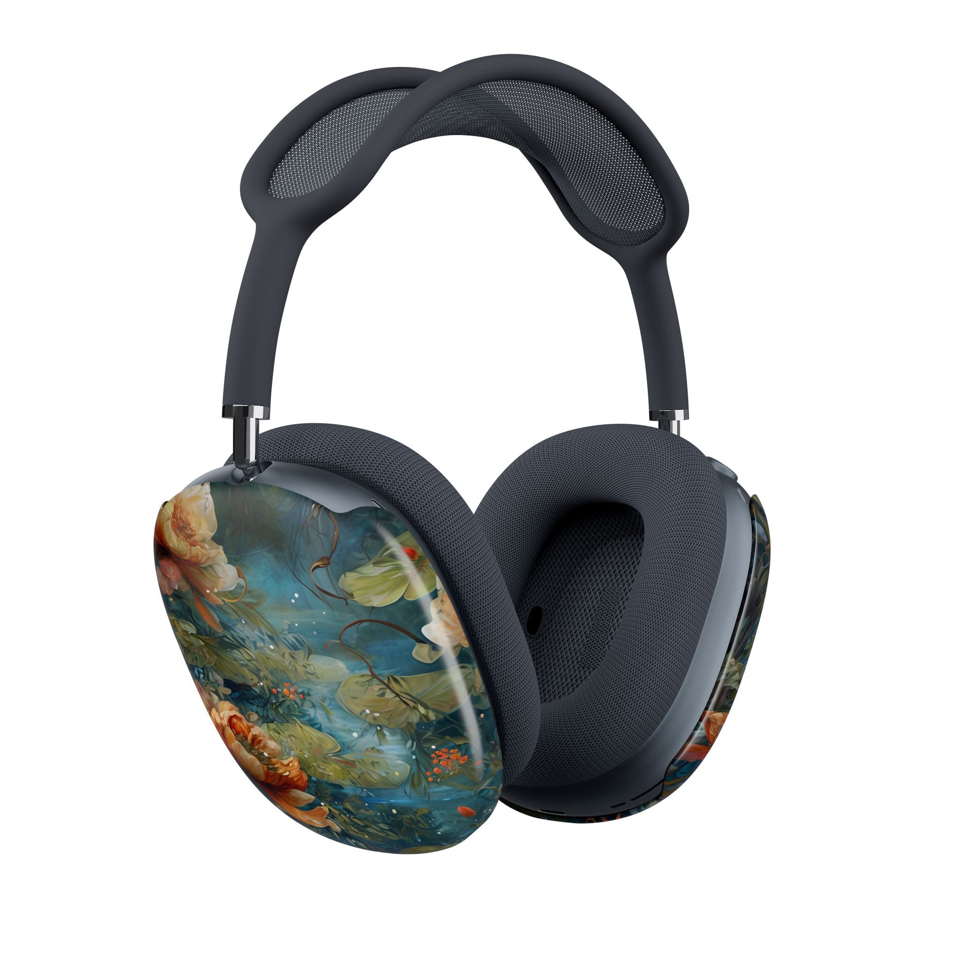 Transform your AirPods Max into a wearable work of art with our Waterlily Nocturne covers. Featuring a serene waterlily design set against deep, moody blues.